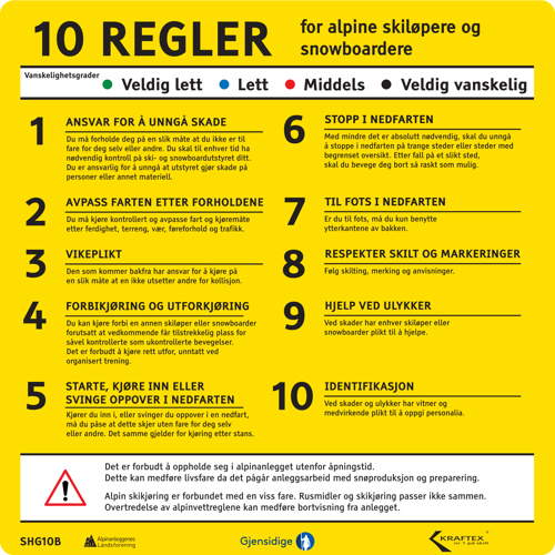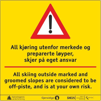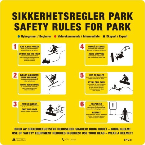 Du må forholde deg på en slik måte at du ikke er til fare for deg selv eller andre. Du skal til enhver tid ha nødvendig kontroll på ski-/snowboardutstyret og du er ansvarlig for å unngå at utstyret gjør skade på personer eller annet materiell. - Avpass farten etter forholdene